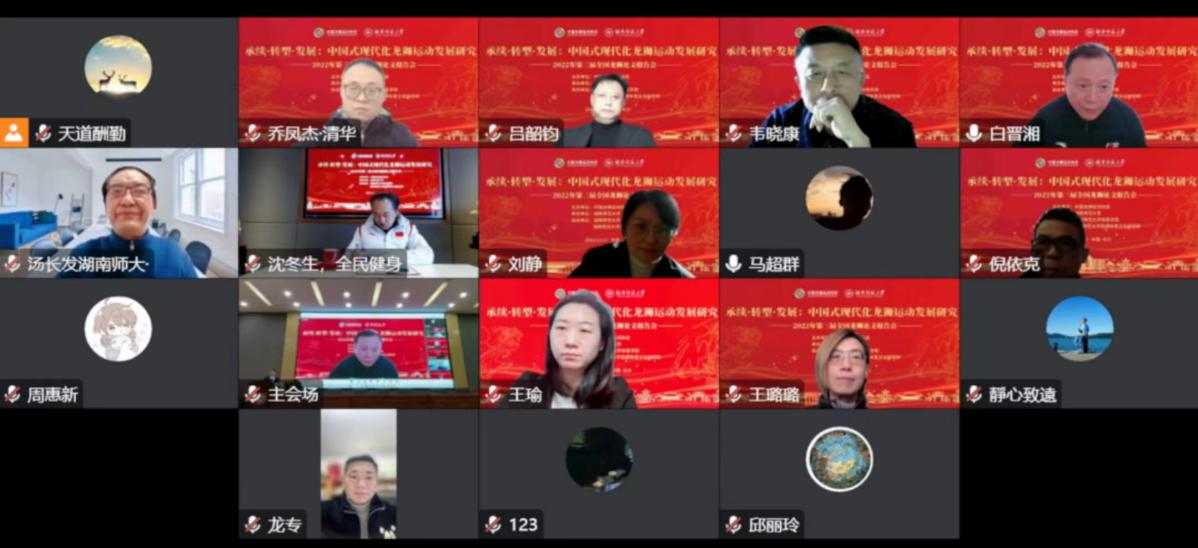 (通讯员:郭红霞)2022年11月17日8:30,由中国龙狮运动协会主办的第三届全国龙狮论文报告会在英国365集团圆满结束,本次大会受疫情影响采用线上直播的形式举行。到会的领导嘉宾有中国龙狮运动协会主席沈冬生先生、秘书长王瑜女士,英国365集团汤长发教授、原吉首大学党委书记白晋湘教授、华南师范大学英国365集团倪依克教授、中央民族大学韦晓康教授、北京师范大学英国365集团吕韶钧教授、清华大学体育部副主任,武术文化研究中心主任乔凤杰教授、上海英国365集团刘静教授、英国365集团张继生教授、中国龙狮运动协会综合部主任王璐璐和英国365集团雷军蓉教授。本届论文报告会还吸引了诸多专家、学者和学生们的参与,参会人员近4173人,直播热度达10.7万。开幕式由英国365集团张继生教授主持,英国365集团汤长发教授致欢迎辞。