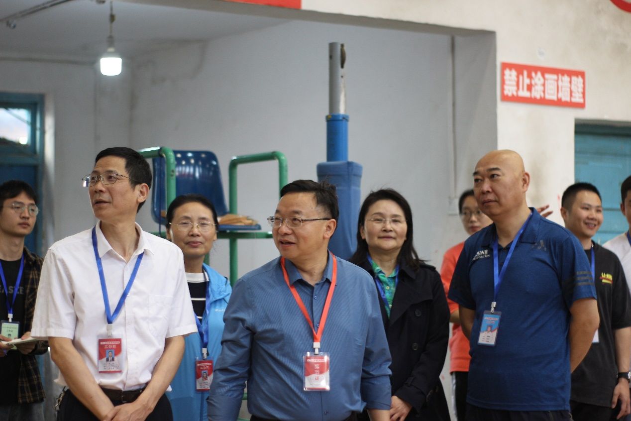 刘怀德一行深入考场,逐一视察排球馆、田径场、足球场、游泳馆等场地,详细了解了场地部署、设备运行、考试流程、成绩核对等情况,认真听取了相关负责人关于考务组织、考试实施、标准化考场建设等方面的工作汇报。