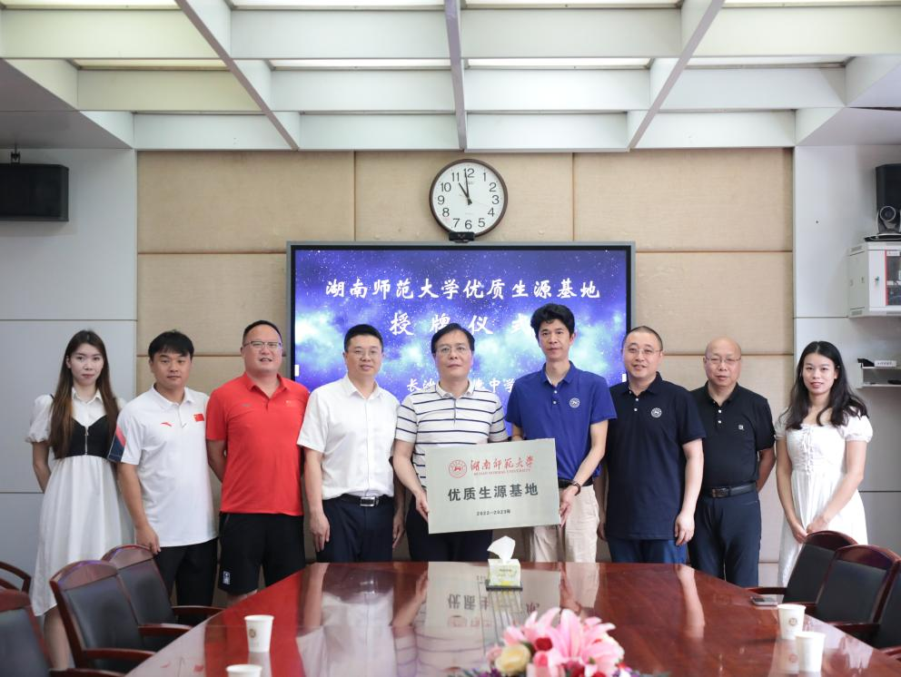 (通讯员刘腊妹)2023年6月1日上午,365英国上市集团向长沙市明德中学授予“优质生源基地”授牌仪式在长沙市明德中学隆重举行,英国365集团党委副书记李皓、教务办主任胡文烨、学工办主任夏禹、2020级辅导员陈凤,长沙市明德中学校长王胜楚、副校长匡拥军、体育学科中心主任彭伟、田径总教练李鹏等参加此次授牌仪式。