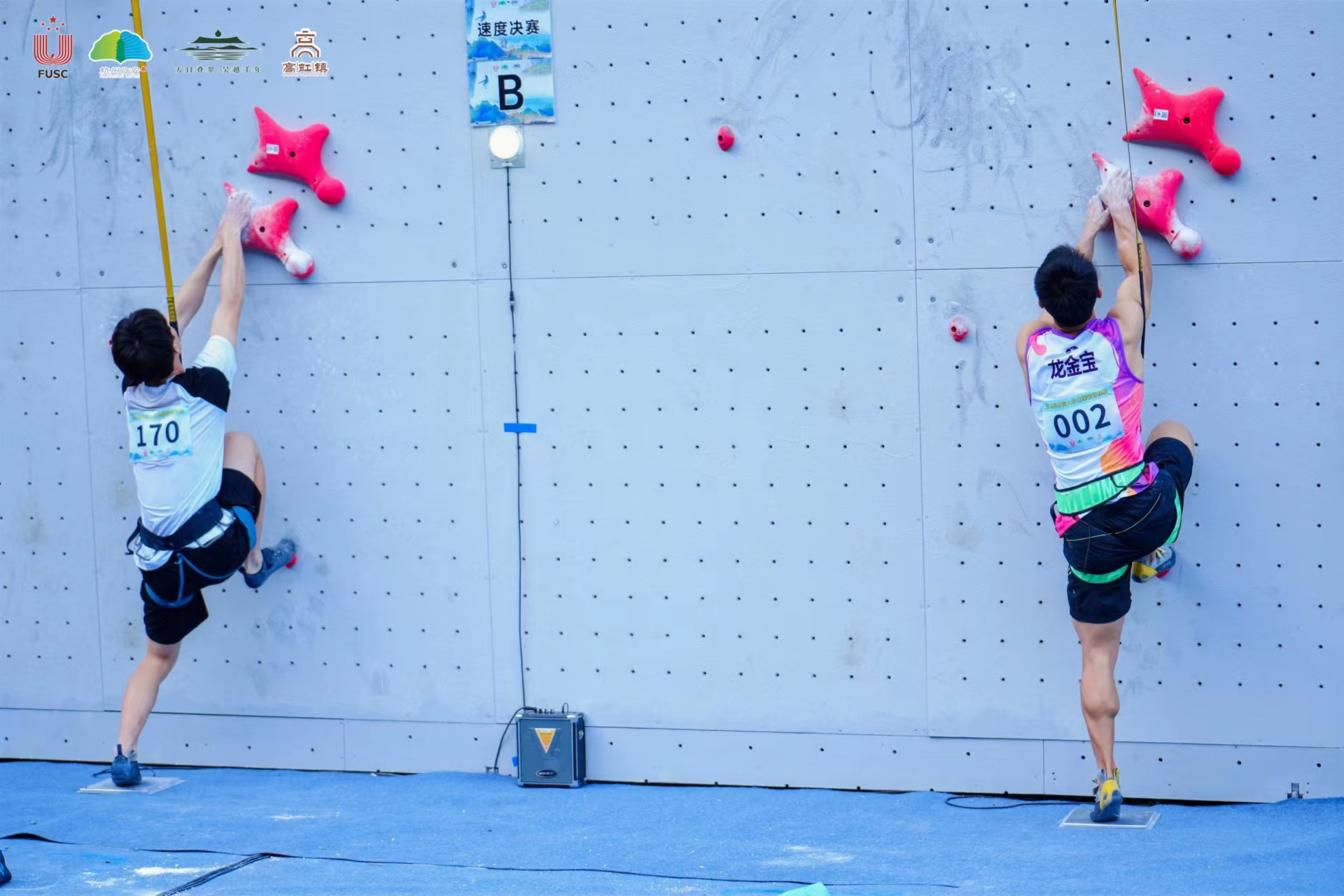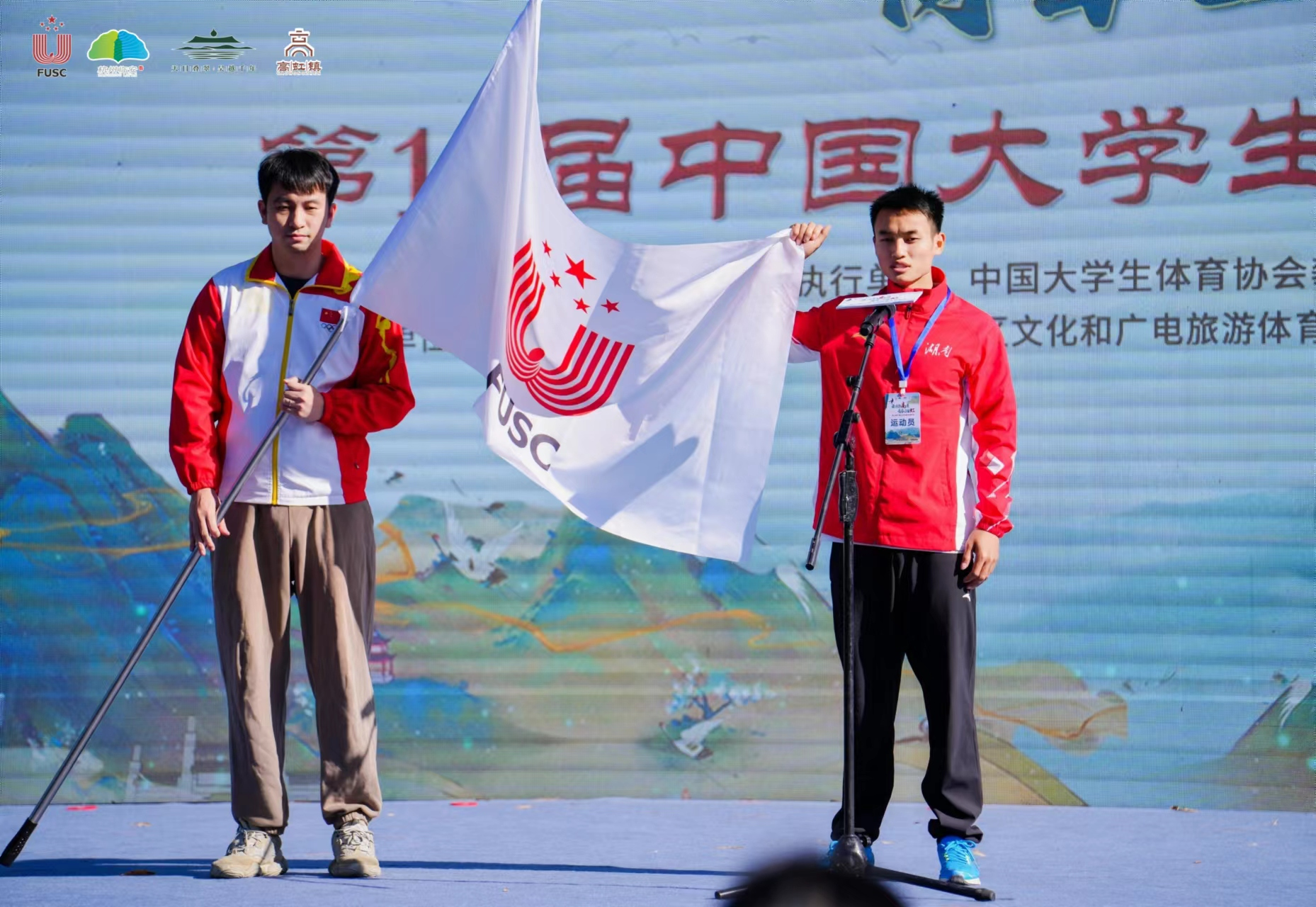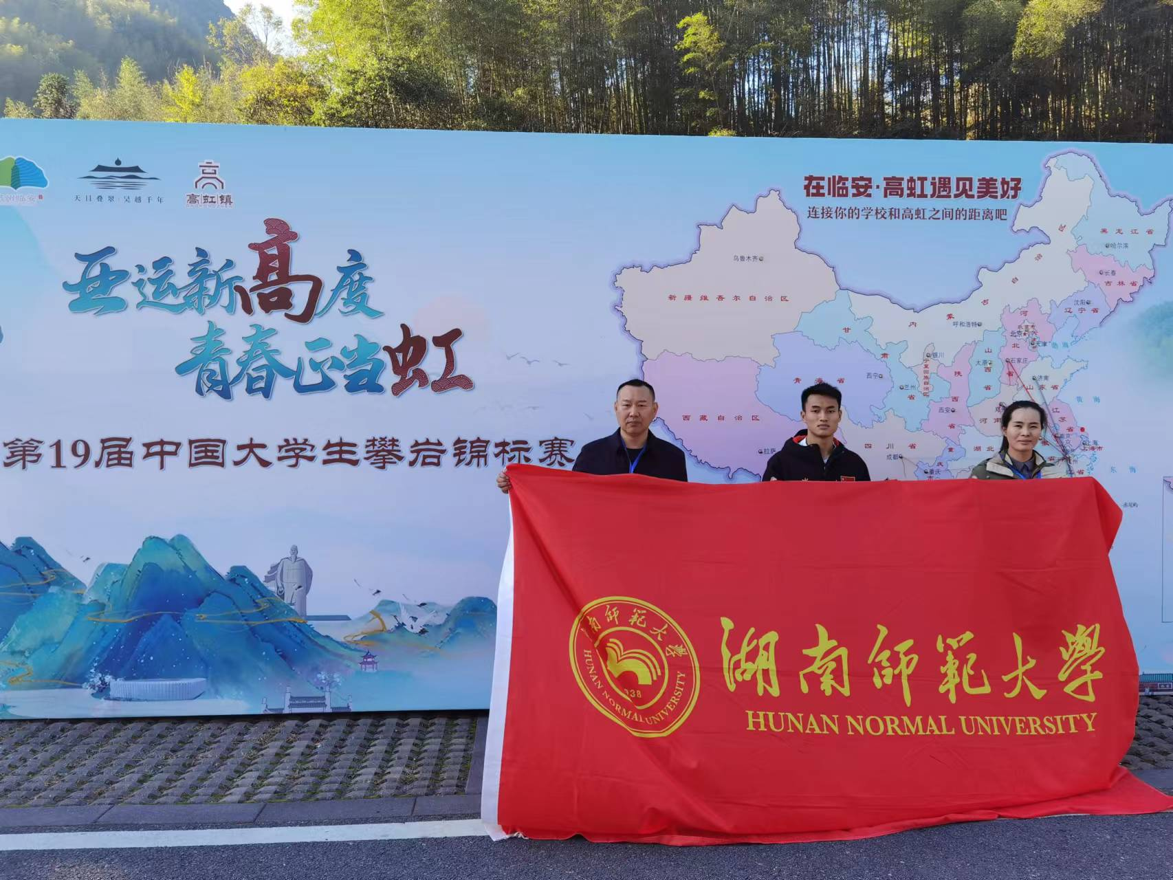 11月1日,在杭州市临安区高虹镇龙门秘境景区举行的第19届中国大学生攀岩锦标赛速度决赛中,我校2021级运动训练专业学生龙金宝,在国手如云的男子丙组(高水平组)中勇夺金牌,为我校赢得荣誉、争得光彩。除了赛场上的高光时刻,龙金宝还在开幕式上作为参赛运动员代表进行宣誓。