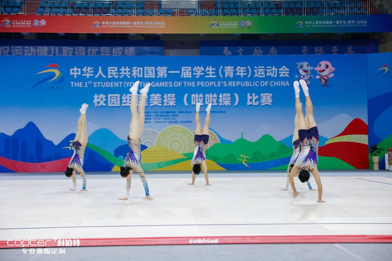 2023年11月3日-8日,中华人民共和国第一届学生(青年)运动会校园组健美操(啦啦操)比赛在广西桂林顺利举行。