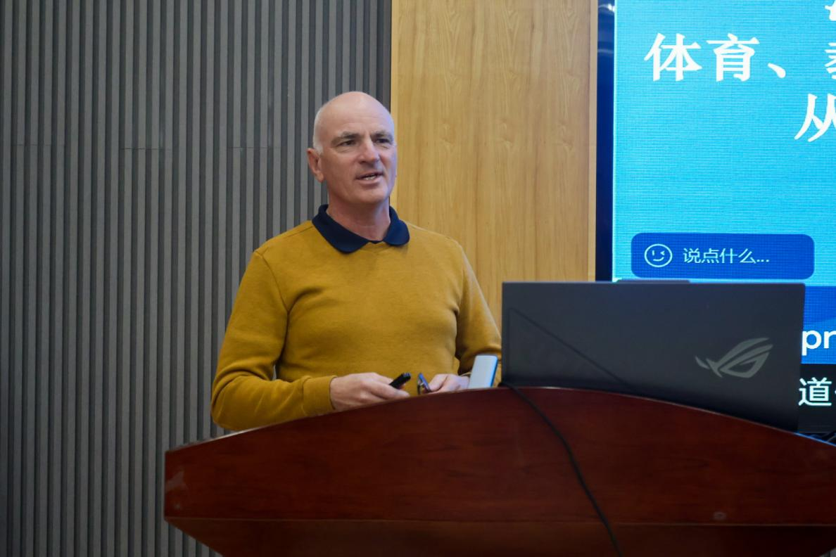 英国中央兰开夏大学体育与健康科学学院研究与创新主任David Grecic教授作了题为“体育与运动科研项目”的报告。他主要围绕体育教育、运动科学等领域展开,介绍了各自学校、研究团队及相关项目,研究方向涵盖体育活动对身心健康的影响、教学方法创新、数字技术应用等;还探讨了国际合作,包括学生和教师交流、联合研究等,旨在提升全球体育教育质量。