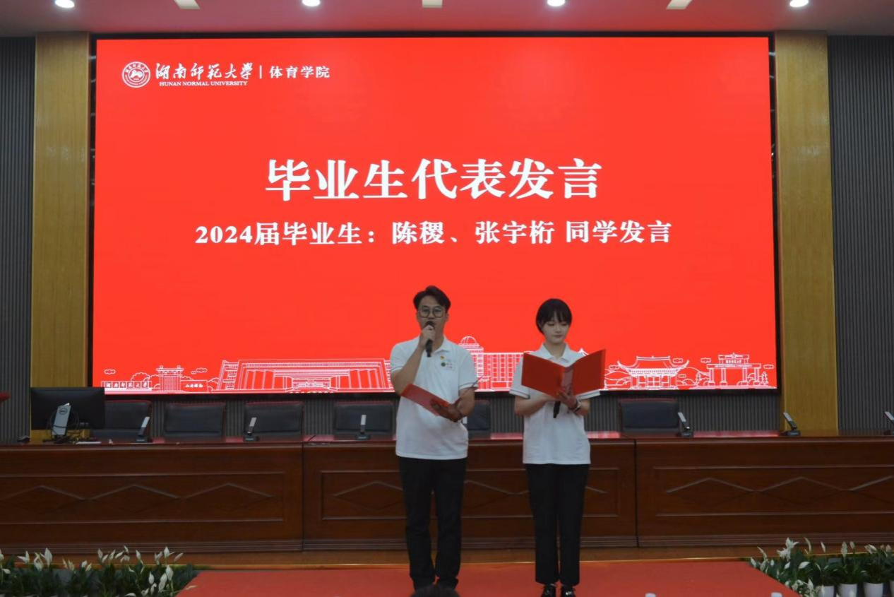 首先由毕业生代表张宇珩、陈稷发言,首先代表2024届全体毕业生表达了对学校悉心栽培和老师淳淳教诲由衷的感谢。