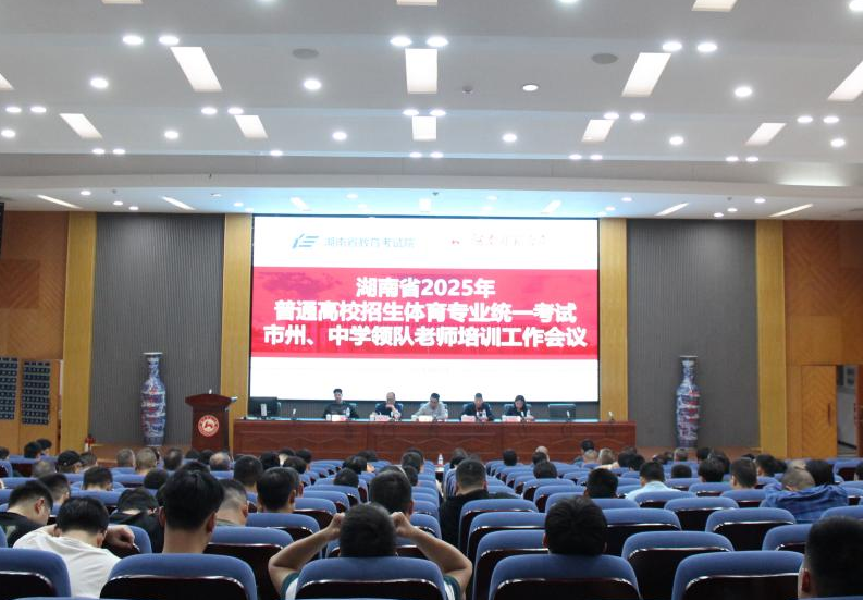(通讯员:徐乙文 蒋晓晨)4月10日下午,湖南省2025年普通高校招生体育专业统一考试市州、中学领队老师培训工作会议在我院召开。湖南省教育考试院普招处处长魏勇、湖南省教育考试院普招处副处长谢红深、湖南省2025年体育统考仲裁组组长熊茂湘,体育统考考场负责人、我院党委副书记李皓出席。会议由我校招生与就业指导处副处长李灿华主持。