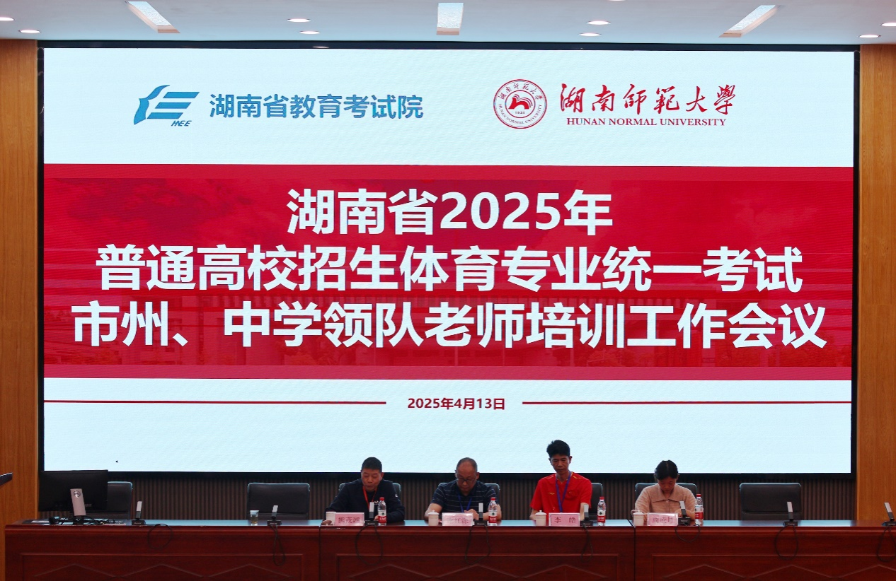 (通讯员:杨平文萱 刘嘉炜)4月13日下午,湖南省2025年普通高校招生体育类专业统一考试第二批市州、中学领队老师培训工作会议在我院召开。湖南省教育考试院普招处副处长谢红深,湖南省2025年体育统考考点办公室负责人、我院党委副书记李皓及湖南省体育统考仲裁组组长熊茂湘出席会议。会议由我校招生与就业指导处考务科科长周凌月主持。