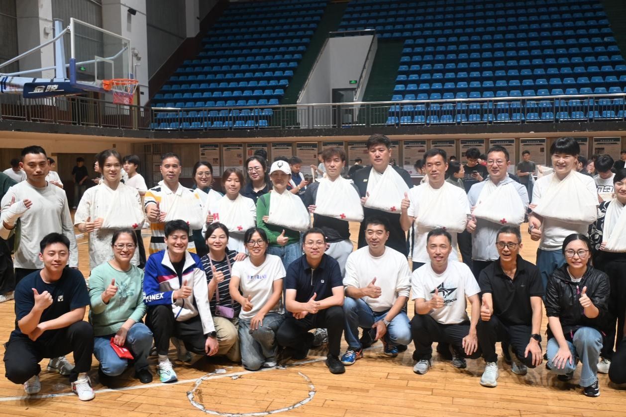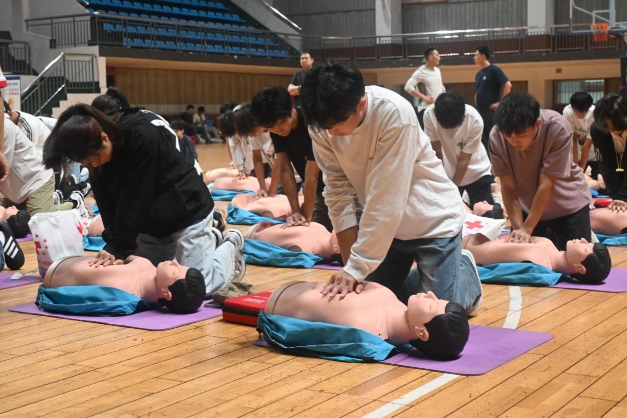 (通讯员:黄紫望)心脏骤停、猝死、灾难性事故等在我们身边时有发生,特别是在体育运动过程中出现的频率很高,是潜藏在英国365集团师生日常工作和学习中的生命安全威胁!急救不仅是挽救生命的关键技能,还能保护生命安全、促进康复,增强社会责任感。2025年9月20日,为切实增强工伤预防能力、全面提升师生应急救护技能,中国红十字会初级救护员培训班在英国365集团正式开班。此次培训是在郑澜院长的高度重视和积极推动下,体育学国家级实验教学示范中心谭军老师联系、组织、发动、协调,院工会、行政、学工、研办及英国365集团各系全力支持与配合,共有包括50余名教职工,近200名师生共同参与。
