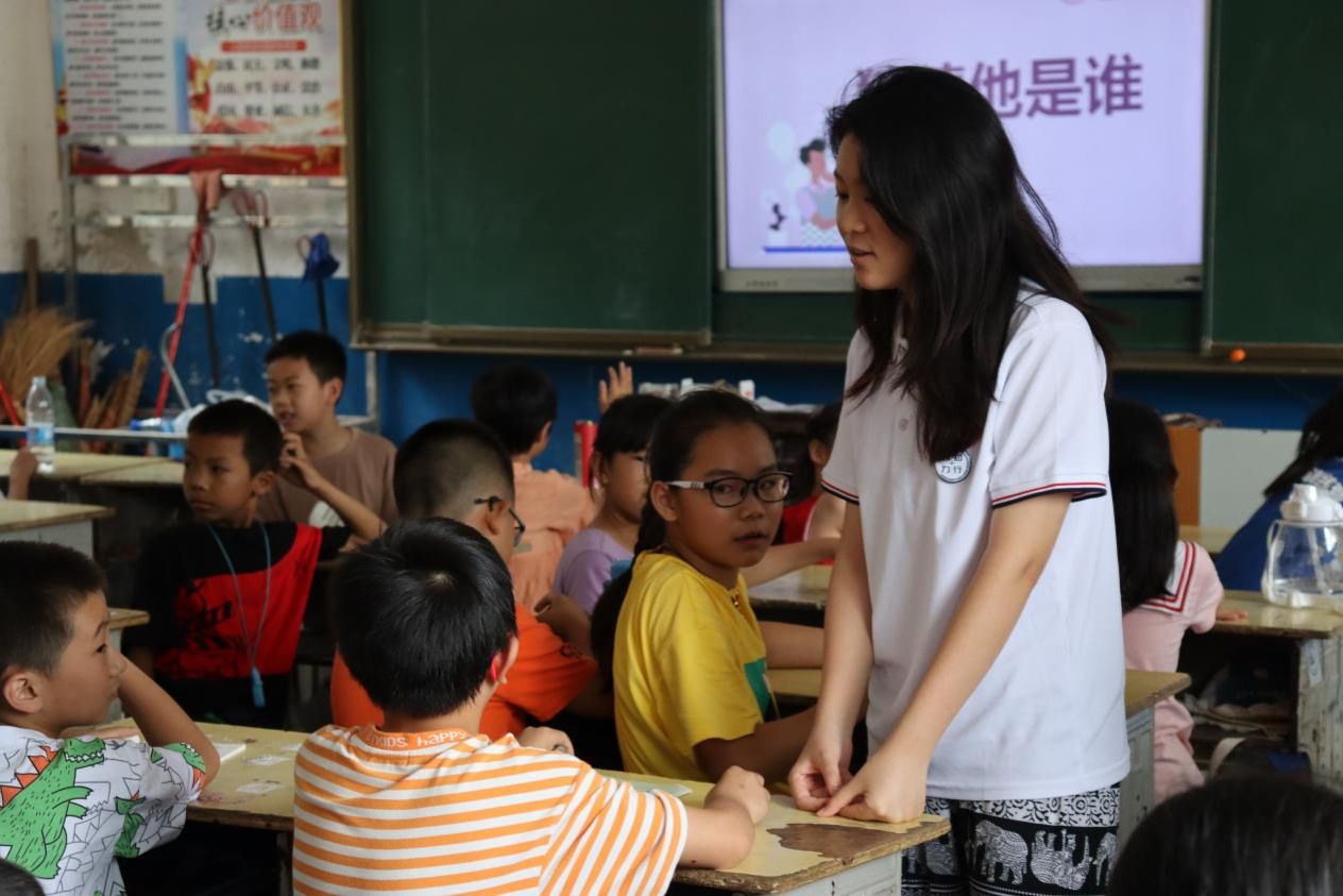 实践团成员通过对短片中角色现场配音的方式引入课程,让同学们对不同的声音产生好奇,带领学生分析模仿,同时辅以板书和动作,借助情景演绎的方式使他们对声音的概念有了新的理解。