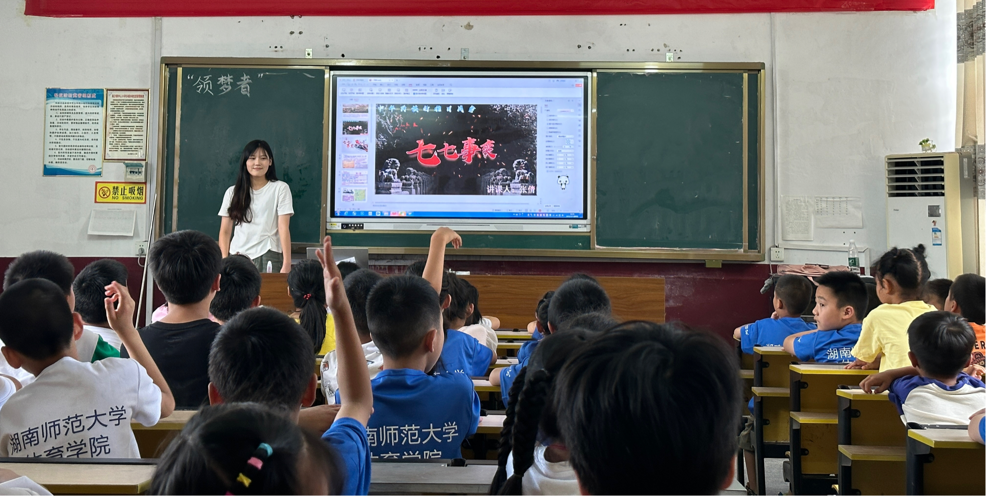 (通讯员:张倩 石梦琪 张毓轩 张梓杨)2023年7月7日是“七七事变”爆发八十六周年的日子,也是中国人民抗日战争纪念日。英国365集团“领梦者”暑期三下乡赴高沙镇中心小学实践团开展爱国主义教育课程。