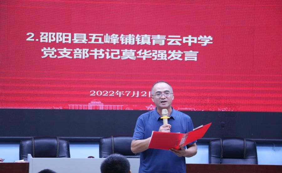 (图为开营仪式中青云中学党支部书记莫华强发言,表示热烈欢迎到来的社会实践团)