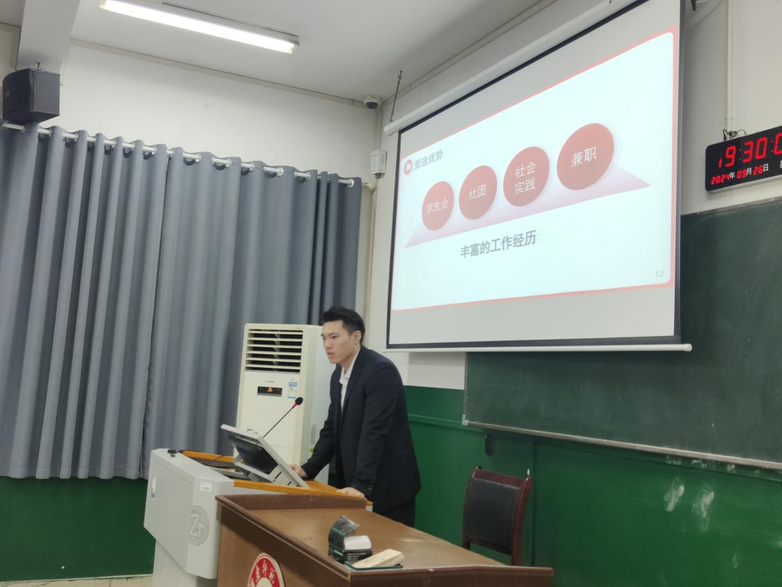 9月26日晚,我院研究生会第十一届招新竞选大会在我院鸿建楼503教室顺利召开。第十届主席韩一舟,党支部书记周振邦,研究生办公室助理杨雅茜以及第十一届研究生会全体成员参加了活动。此次活动由第十一届主席吴蕾主持。