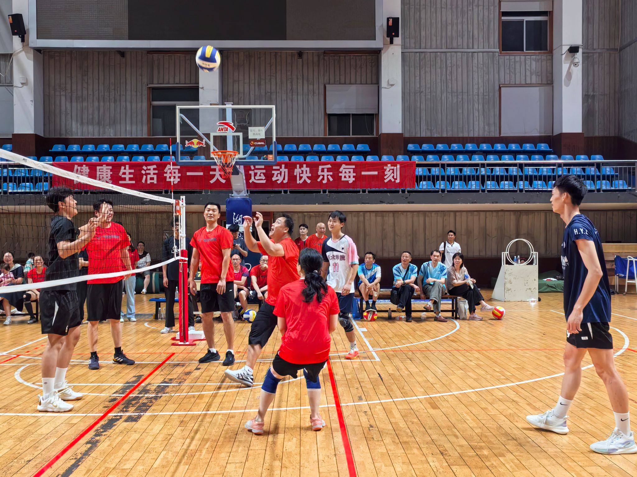 2025年6月9日-12日,学校工会为了贯彻落实全民健身国家战略,组织了“永远跟党走 奋进新征程”2025年教职工气排球团体赛,比赛在南院体育馆进行。