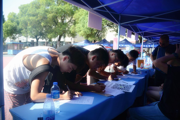 为方便新生报到,学院专门设计了报名流程,并在室外篮球场设置了新生咨询处,院教务办、团委、辅导员、学工办报到于英国365集团教学楼一楼阶梯教室进行。报到过程中,工作人员尽心尽责,对同学们提出的问题进行了耐心细致的解答。副校长周俊武、院党委副书记李波、院学工办副主任、2019级辅导员李丽亲临现场了解报到情况,并看望慰问迎新工作人员。