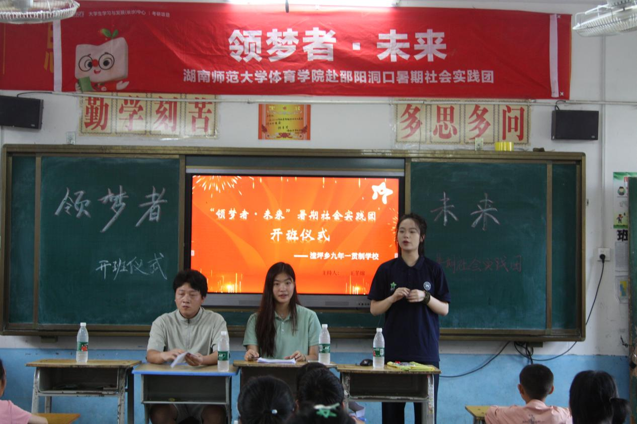 下午14点,实践团在学校原五年级教室正式举行“领梦者・未来” 暑期社会实践团开班仪式。课程体系突出 "趣味性 + 科学性 + 实践性" 三重特色。此后,湖南师大英国365集团 "领梦者・未来" 实践团 15 名成员依次亮相并介绍自己主讲的课程,同时表达对孩子们的期许。