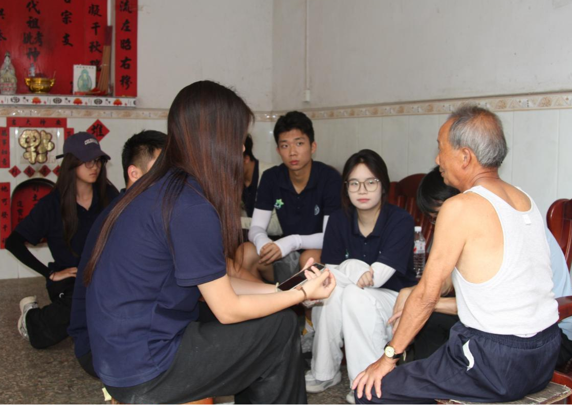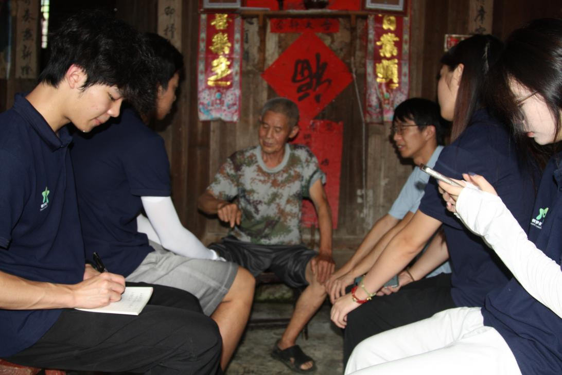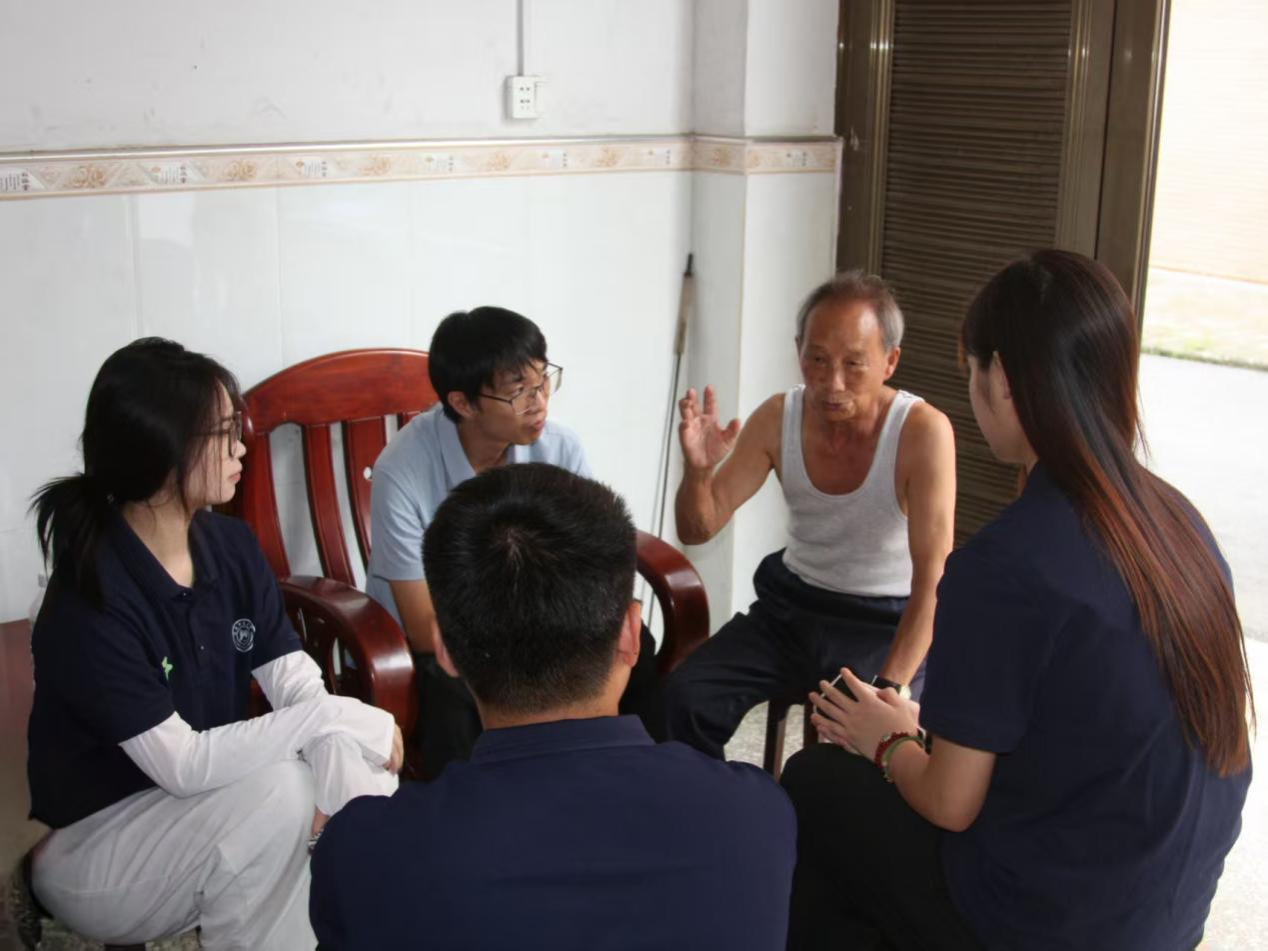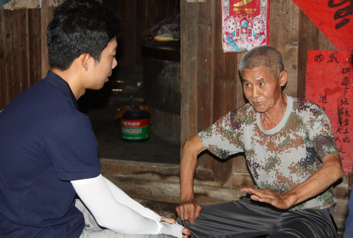 图为团队成员顾汉唐在向老党员谢尚彦提问。供图李舒旸