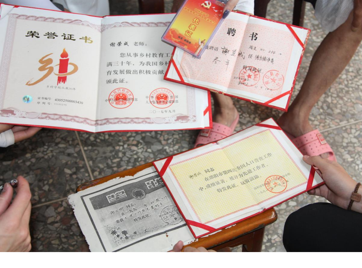 探访尾声,谢荣成捧出珍藏的木盒——泛黄的“优秀共产党员”“师德标兵”奖状无声诉说着平凡岗位的不凡坚守。“这不是终点,是鞭策。”他轻抚奖章,目光深邃,“山里孩子越来越好,走出大山、回馈乡土、成为栋梁,这才是对社会的最大贡献,也是我心中最珍贵的勋章。”