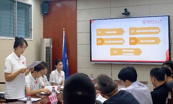 见面会伊始,黄琴老师代表学校对湖南师大体育专业实习生的到来表示热烈欢迎,并简要介绍了本次见面会的指导老师。副校长张钠钠发言,学校一直高度重视体育工作,希望实习生们在实习期间,做到“讲台下聆听者”到“讲台上引路者”身份转变;实习队指导老师鲁春霞发言,实习学生提前开展了对中考内容的教学训练,严格遵守中雅培粹学校的各项规章制度,希望大家快速转变角色。