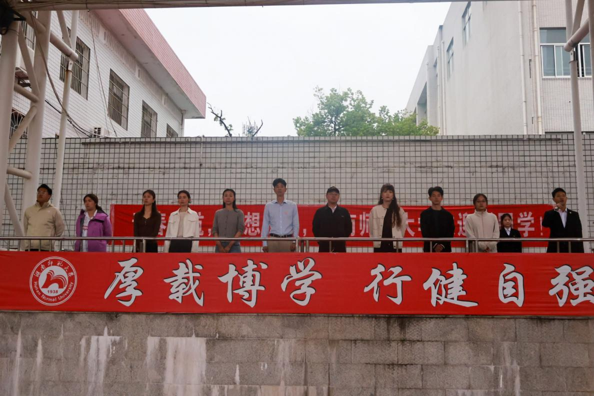 学工办主任夏禹对同学们提出三点要求:一是本周将进行公共课补考,同学们需携带身份证、学生证及准考证;二是提高网络诈骗防范意识,注意保护个人隐私与财产安全;三是升旗结束将下发宗教政策法规宣传单,要求同学们认真阅读学习。